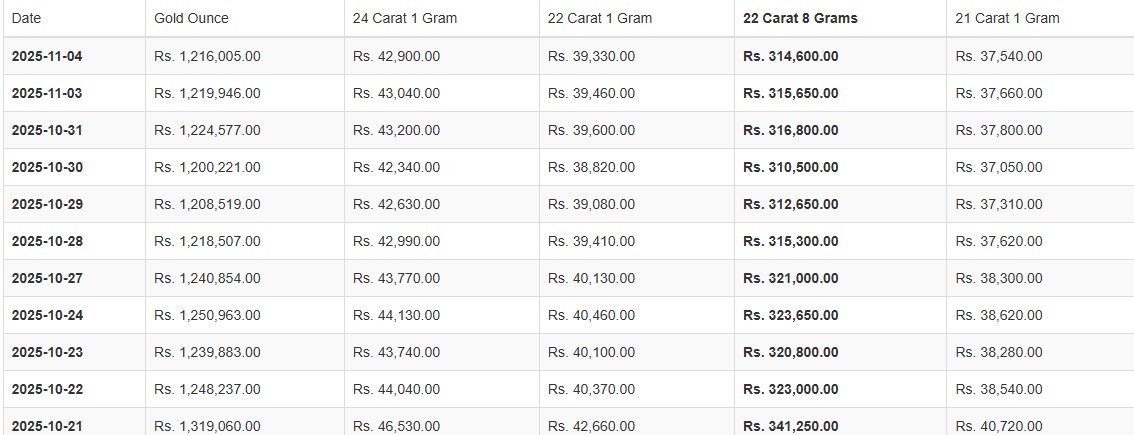 කැරට් 22 සහ 21 ග්රෑම් 1ක මිල පිළිවෙළින් රුපියල් 39,330.00ක් සහ රුපියල් 37,540.00ක් ලෙසයි සඳහන් වූයේ.